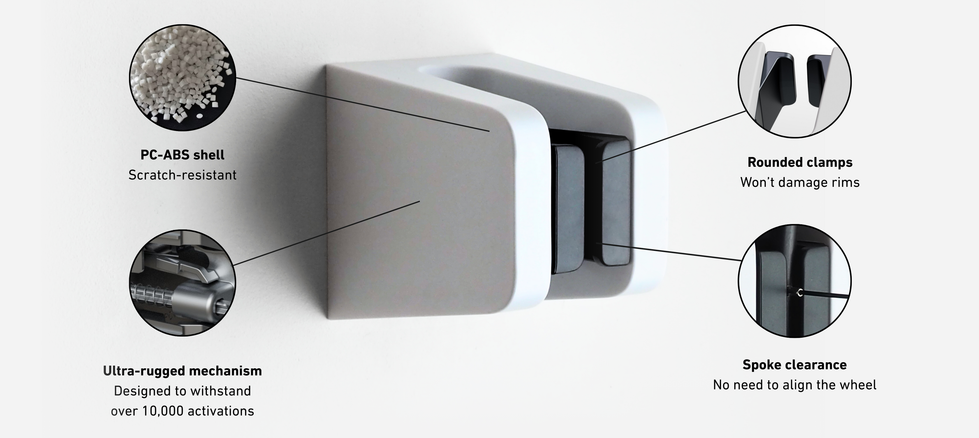 Even if your tire goes flat or someone bumps into it, your bike stays securely mounted to the wall.