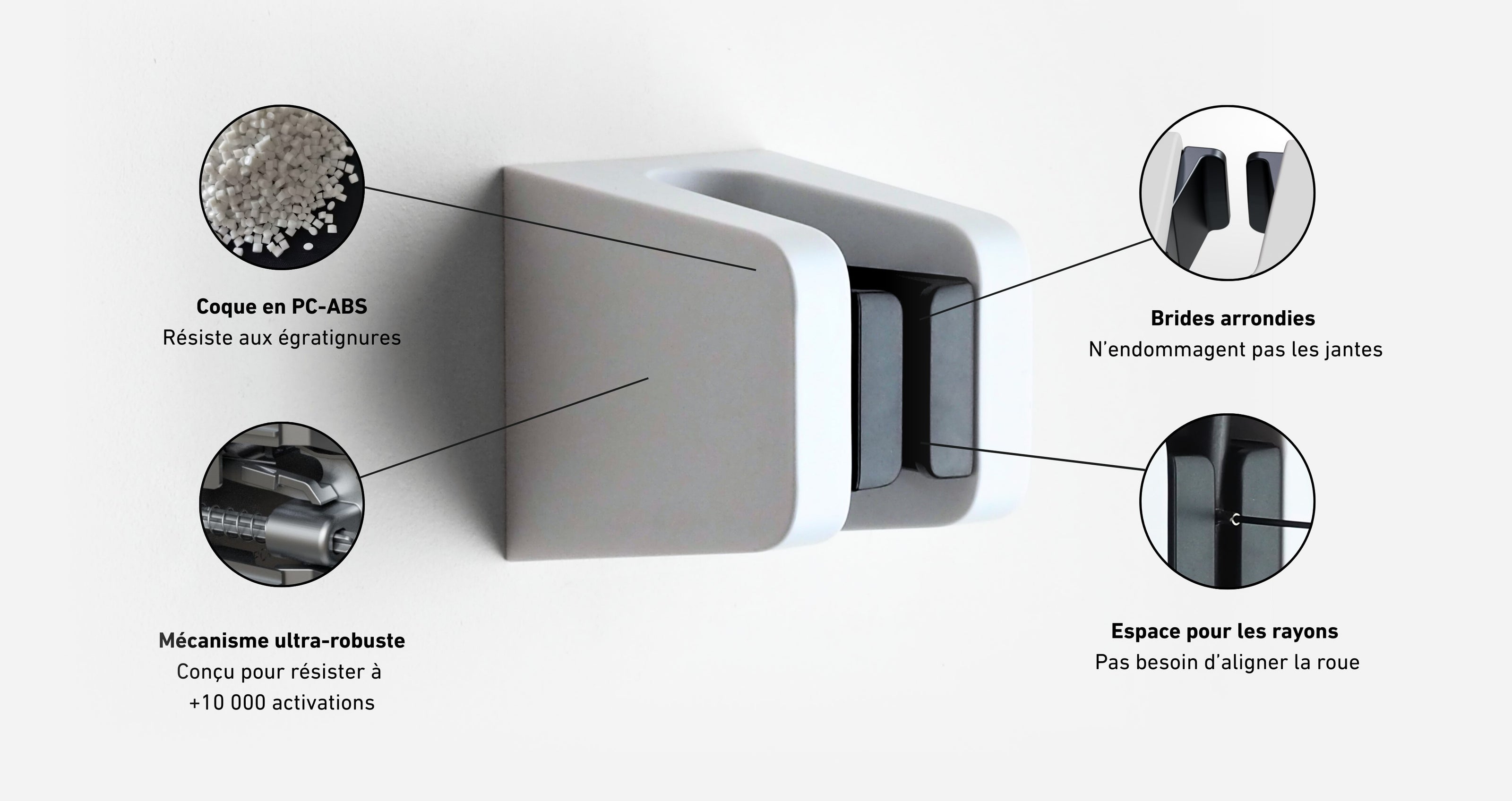 Même avec un pneu qui se dégonfle ou un coup d’épaule au passage, votre vélo reste solidement fixé au mur.