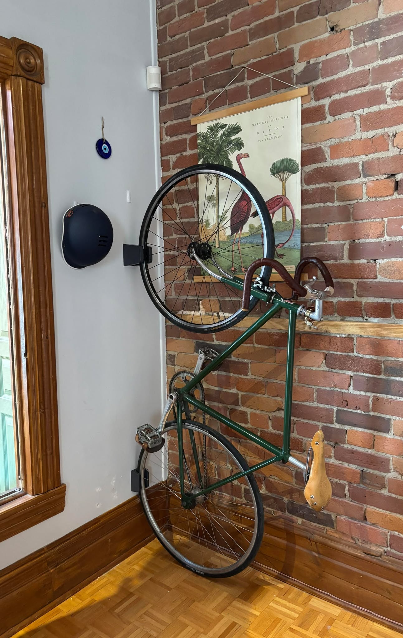 Auparavant, Catherine et Maxime rangeaient leurs vélos l’un au-dessus de l’autre. Ils trouvent leur nouveau système beaucoup plus simple.